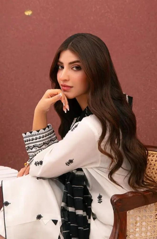 Aneelas - 3PC Lawn Embroidered Chicken Kari Shirt with Embroidered Khaddi Net Dupatta (Unstitched) - RF1328
