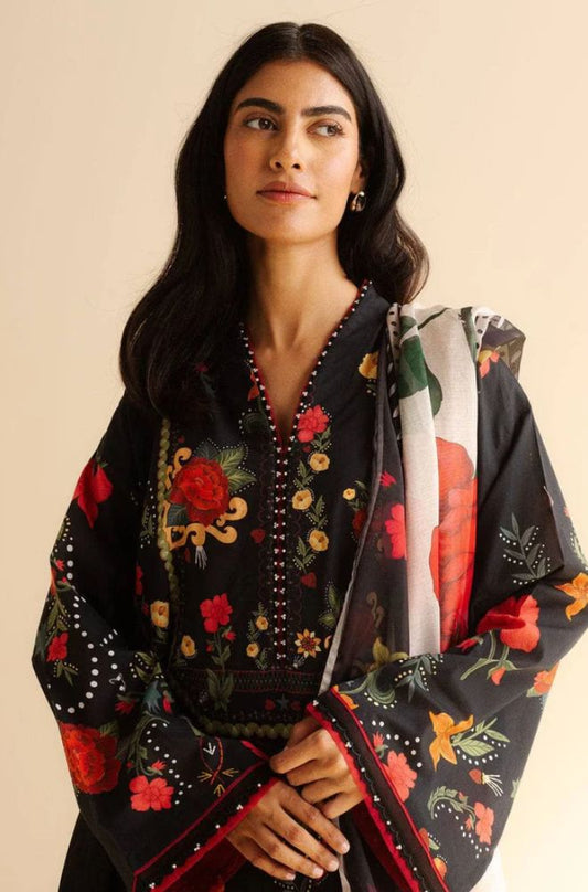 Ethnc - 3PC Banadora Lawn Printed Shirt with Printed Voil Dupatta (Unstitched) - RF1396
