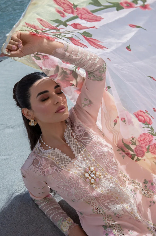 Crimson - 3PC Unstitched Linen Embroidered Boring Front with Printed Pashmina Wool Shawl and Trouser - RF1232